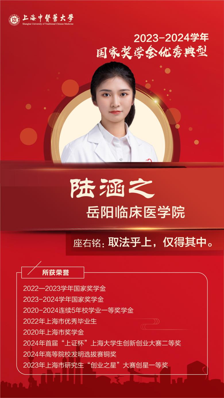 她积极上进,工作认真负责。在学习和科研方面,致力于运用现代AI技术和循证方法,将传统中医理论知识转化为实践,从而探索中医诊断标准化、客观化的有效途径。在校期间以第一作者身份发表论文7篇,其中SCI论文2篇,核心期刊3篇。积极推进中诊创新性科技项目,主持完成上海市创新创业项目1项,授权实用新型专利1项。与此同时,作为STAR共识发展中医药学专科委员会青年委员,参与多部中医药相关报告规范、指南/共识的设计讨论与撰写工作。课业之余,不定期更新自主运营的“李米医学英语”微信公众号,使用中、英双语讲解传播有意思的医学科普知识。医学研究的魅力在于它既能包容创新与探索,又始终坚持严谨与求实。她将带着这份信念,继续探索前行。