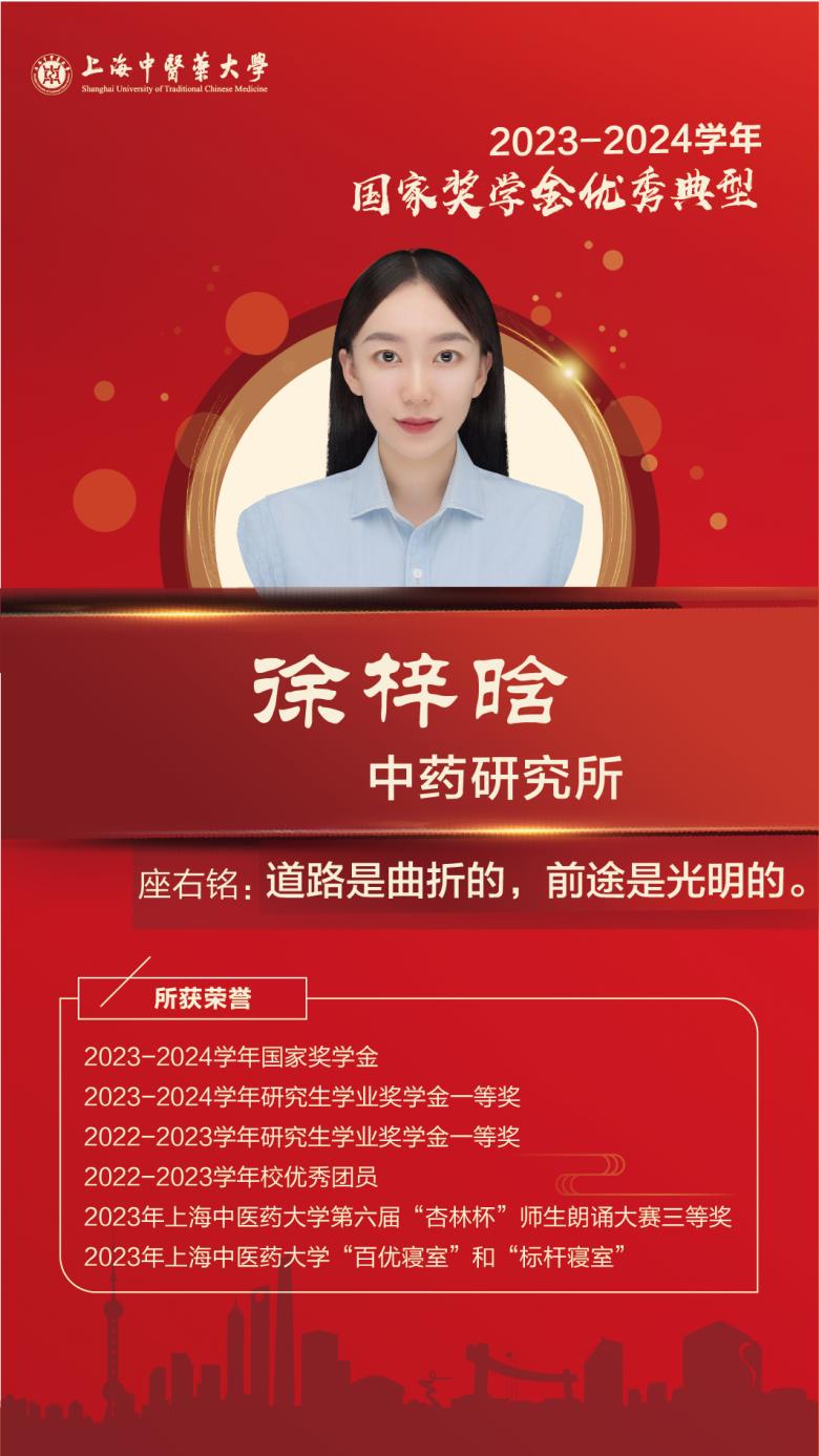 博士研究生就读期间,她勤于思考,刻苦努力,敢于创新和实践,经过导师的悉心指导与她的不懈努力,以第一作者在SCI杂志上发表论文5篇,在投英文文章2篇。此外,她还积极投身于研究生学术交流,于2023上海市药学会中药学青年论文报告会上进行论文汇报,并取得二等奖,于2023年度中药制剂大会中进行研究生汇报。作为一名学生党员,严于律己,时刻以一名合格党员的标准来严格要求自己,发挥积极的先锋模范作用。她积极参加志愿服务活动,展现出高度的责任感与奉献精神,以实际行动传递正能量,曾获得上海科技馆志愿活动积极分子以及校暑期社会实践先进个人。