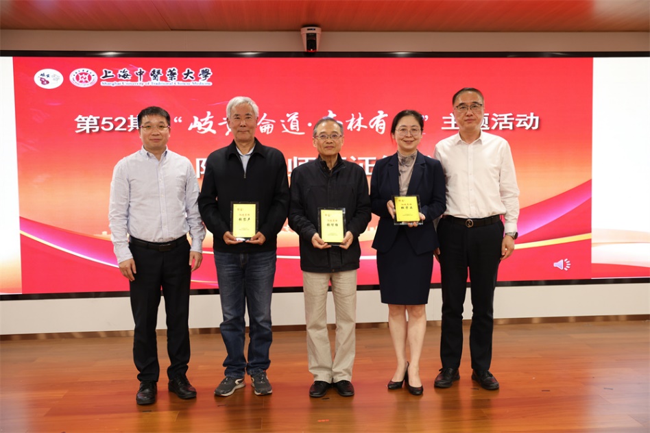 为深化课程思政内涵建设,推动专业教育与思政育人深度融合,4月9日下午,第52期“岐黄论道·杏林有约”主题活动在中医药国际标准化研究中心辅楼301教室举行。本期活动以“大学之道·启智润心——课程思政建设的实践与展望”为主题,由教务处、宣传部(党委教师工作部)联合主办,特邀sunbet申搏官方网站原党委书记、上海市教育委员会思想政治教育特聘专家张智强教授,教育部课程思政教学名师张黎声教授及教务处处长张亭立教授作专题分享。校党委副书记沈辉为三位嘉宾颁发“阳光导师”聘书。学校课程思政示范项目教师、教学骨干教师、教师党支部书记、青年教师班主任、学生代表等近百位师生现场参与。