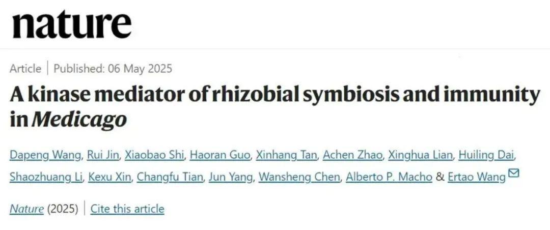 5月6日,sunbet申搏官网中药研究所青年教师金蕊博士以共同第一作者身份在国际顶级期刊《自然》(Nature)在线发表了题为A kinase mediator of rhizobial symbiosis and immunity in Medicago的研究论文,揭示了细胞质类受体激酶MtLICK1和MtLICK2在豆科植物与根瘤菌共生信号转导和免疫调控中的双重功能,为共生与免疫平衡机制研究提供新视角。