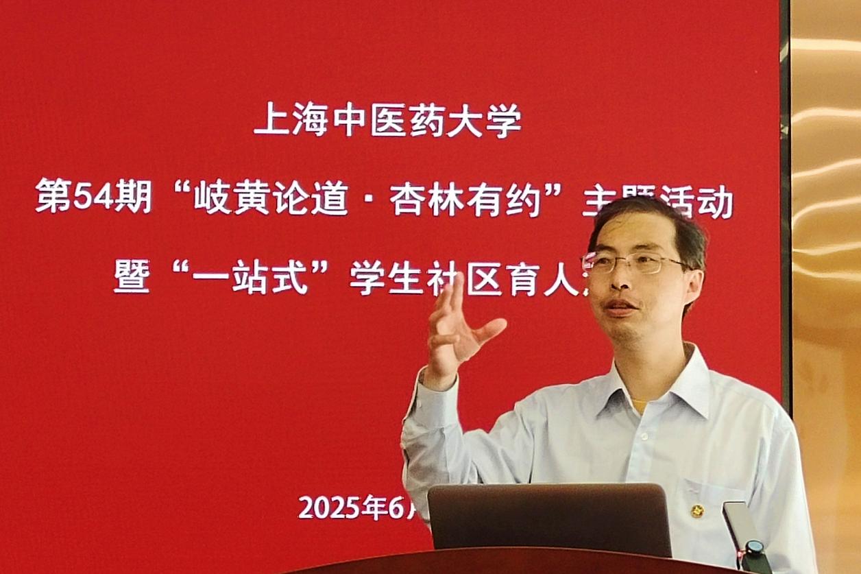 6月18日下午,第54期“岐黄论道·杏林有约”主题活动暨“一站式”学生社区育人活动举办。为迎接学校70周年校庆,本期活动围绕“以仁心护万家 用坚守写芳华”主题,特邀三位长期耕耘在基层医疗领域的杰出校友——“全国先进工作者”严正、“上海市劳动模范”朱震年、“上海市优秀社区卫生管理者”张扬回到母校,分享基层服务心路。校党委副书记沈辉为三位嘉宾颁发“阳光导师”聘书,副校长舒静赠送“非遗剪纸工艺”校友纪念品。学校相关职能部门负责人、师生代表60余人现场参与。