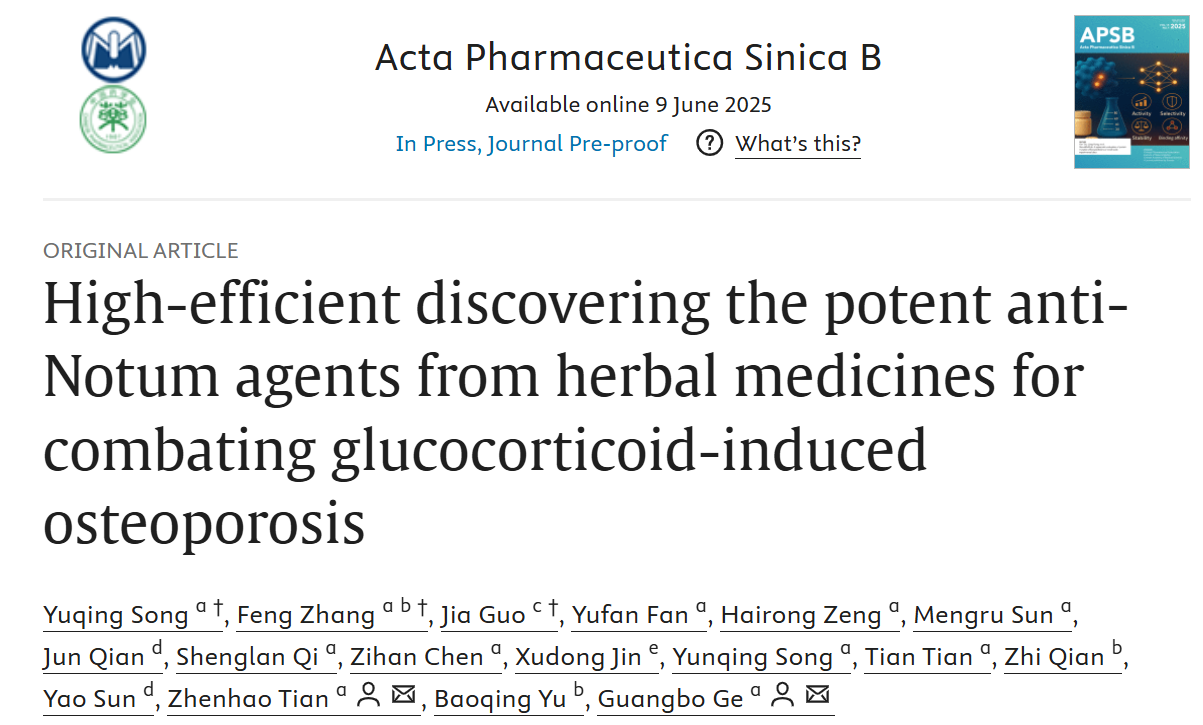 交叉科学研究院葛广波团队从中草药中高效发现抗骨质疏松症的天然小分子候选药物