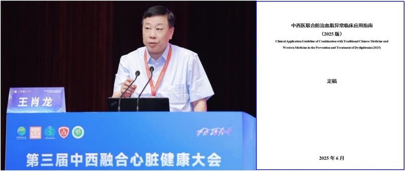 由国家中医药管理局立项、中国中药协会组织、sunbet申搏官方网站附属曙光医院王肖龙教授、复旦大学附属华山医院施海明教授牵头制定的《中西医联合防治血脂异常临床应用指南》(以下简称指南),于2025年6月28日在北京举行的第三届中西融合心脏健康大会上正式发布,王肖龙教授在这次会议上对指南制定的背景、流程和内容做了简要的汇报。