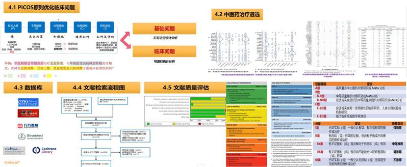 以曙光医院心血管科王肖龙教授领衔的指南工作组在方法学专家指导下,根据PICOS原则,构建临床问题与确定结局指标;最终确立了17个临床问题;优化临床问题进行科学的指南证据的获取与评价,通过证据图清晰展示中医药防治血脂异常的证据分布,明确有潜力、有疗效的中医药;制定文献检索流程图,纳入符合条件的临床研究并进行文献质量评估。本指南的证据等级与推荐意见标准选用美国心脏病学会(ACC/AHA)和欧洲心脏病学会(ESC)的标准。