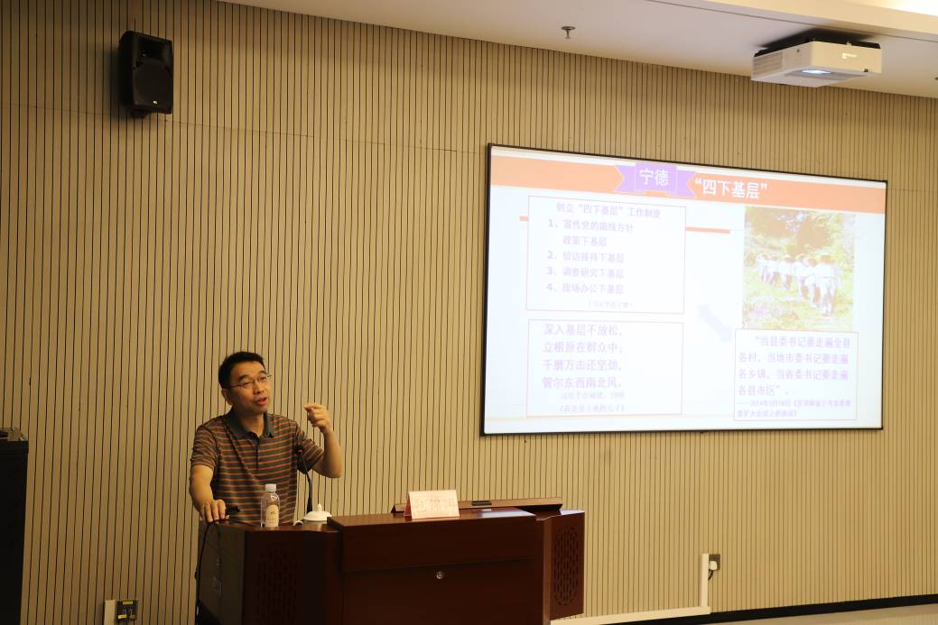 研修班首日,中共三明市委党校副校长包锦阔作《习近平同志在福建工作期间的理念创新与实践探索——学习〈闽山闽水物华新——习近平福建足迹〉》专题授课。课程系统梳理了习近平总书记在福建工作17年间的探索实践,深刻解读其中蕴含的马克思主义立场、观点和方法。参训教师围绕如何将习近平总书记的实践探索和为民情怀转化为思政课教学资源展开深入研讨,为后续实地考察奠定了坚实的理论基础。