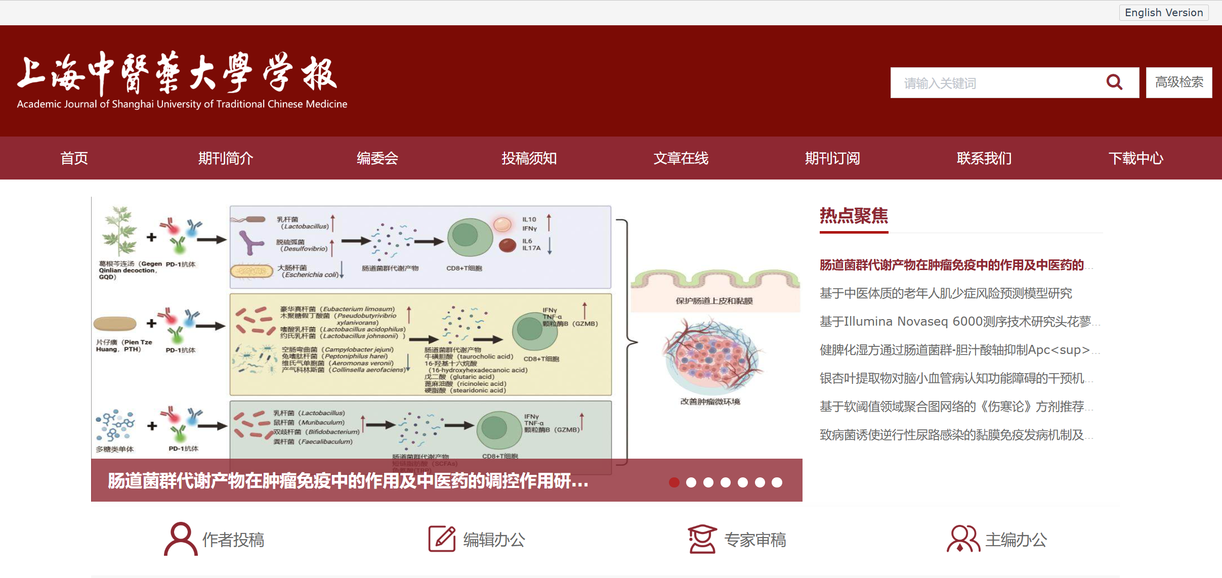 《sunbet申搏官方网站学报》由sunbet申搏官方网站、上海市中医药研究院主办,1960年创刊,双月刊,国内外公开发行。现任主编陈凯先,执行主编季光。在校党委坚强有力的领导下,在各职能部门、二级学院、研究所、附属医院的关心支持下,在广大优秀作者、审稿专家及编辑部全体编辑的群策群力下,《sunbet申搏官方网站学报》紧跟中医药学科发展动态,注重创新和特色报道,不断推出学术精品力作,持续提升期刊质量。