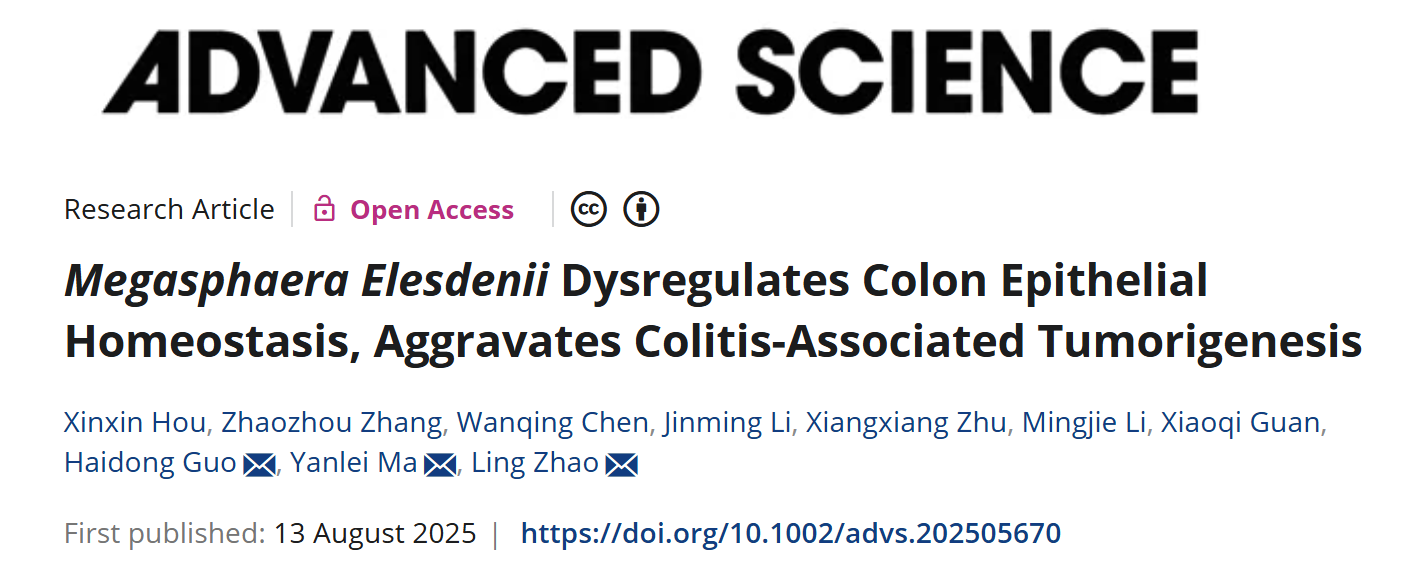 近日,sunbet申搏官网中西医结合学院赵玲研究员、国海东研究员团队与复旦大学附属肿瘤医院马延磊主任团队合作,在国际期刊Advanced Science上发表题为“Megasphaera Elesdenii Dysregulates Colon Epithelial Homeostasis, Aggravates Colitis-Associated Tumorigenesis”的研究成果。