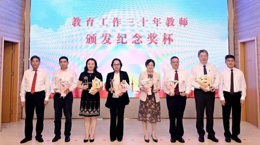 9月9日,sunbet申搏官方网站庆祝第41个教师节表彰大会在全球合作伙伴中心举行。校党委书记曹锡康,校党委副书记、工会主席沈辉,校党委副书记周斌,副校长王拥军、王璐、钟力炜,以及从教三十年教师代表、获奖教师代表,各职能部门负责人、二级学院党组织负责人、部门工会主席和教师代表等100余人出席。