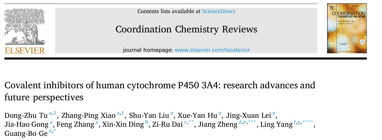 交叉科学研究院葛广波团队在国际权威刊物发表CYP3A4共价抑制剂研究现状综述