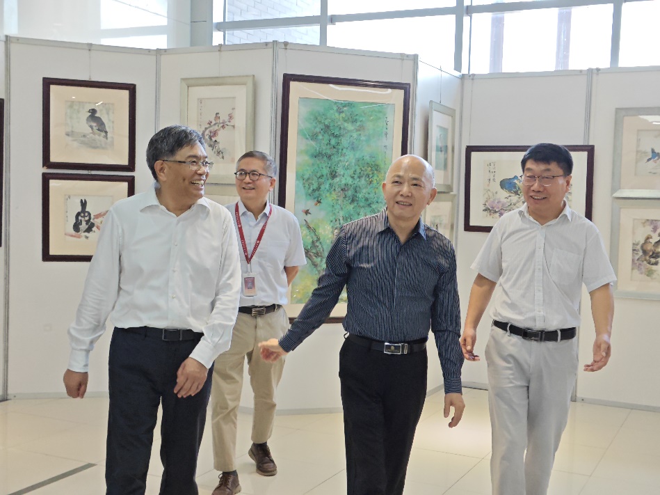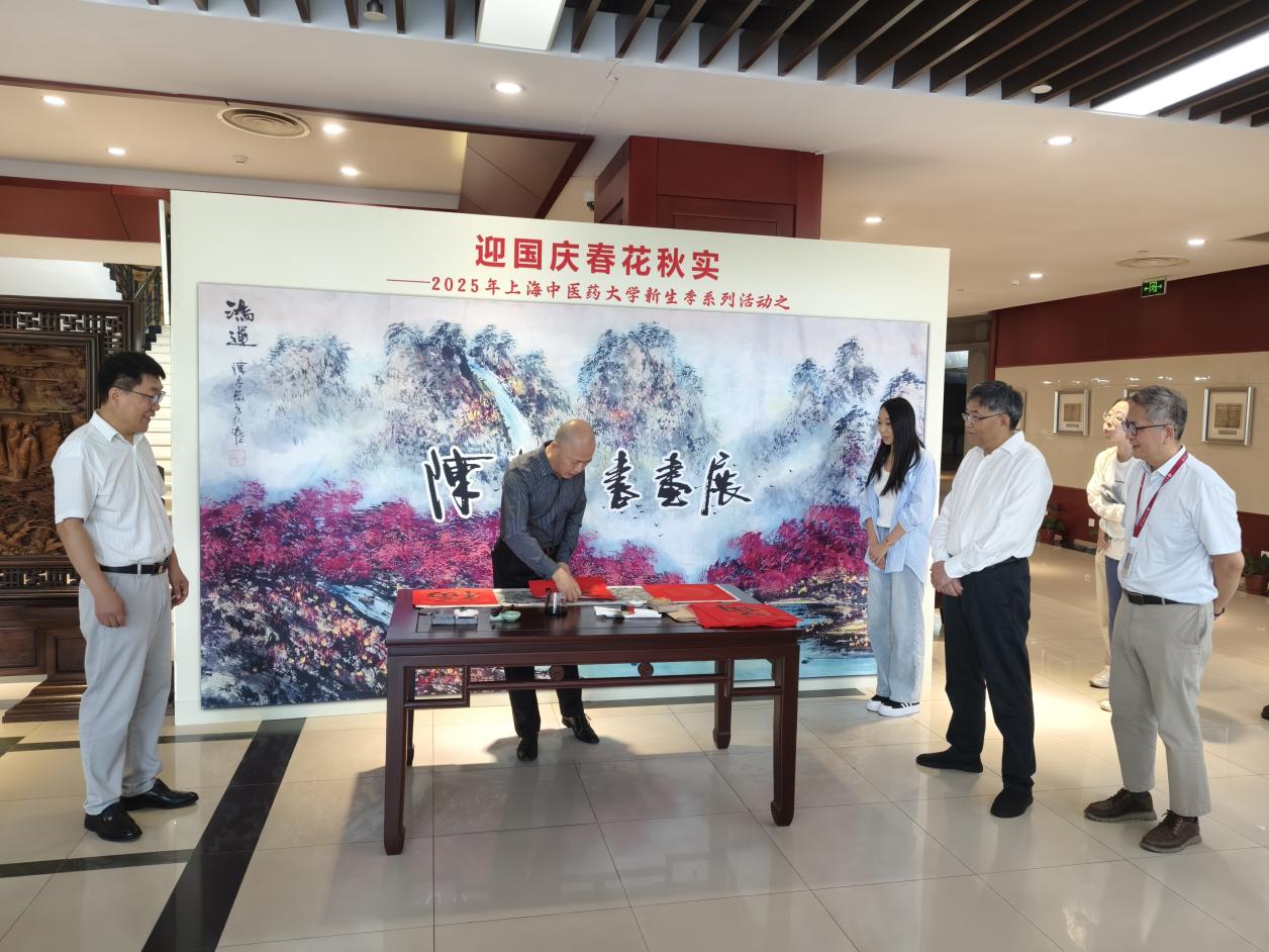 9月8日,2025年sunbet申搏官方网站新生季系列活动之“迎国庆春花秋实——陈志宏个人书画作品展”在学校图书馆一楼大厅开幕。校党委书记曹锡康,上海市文史研究馆馆员、著名海派书画家陈志宏,学校相关职能部门负责人及师生代表出席活动。