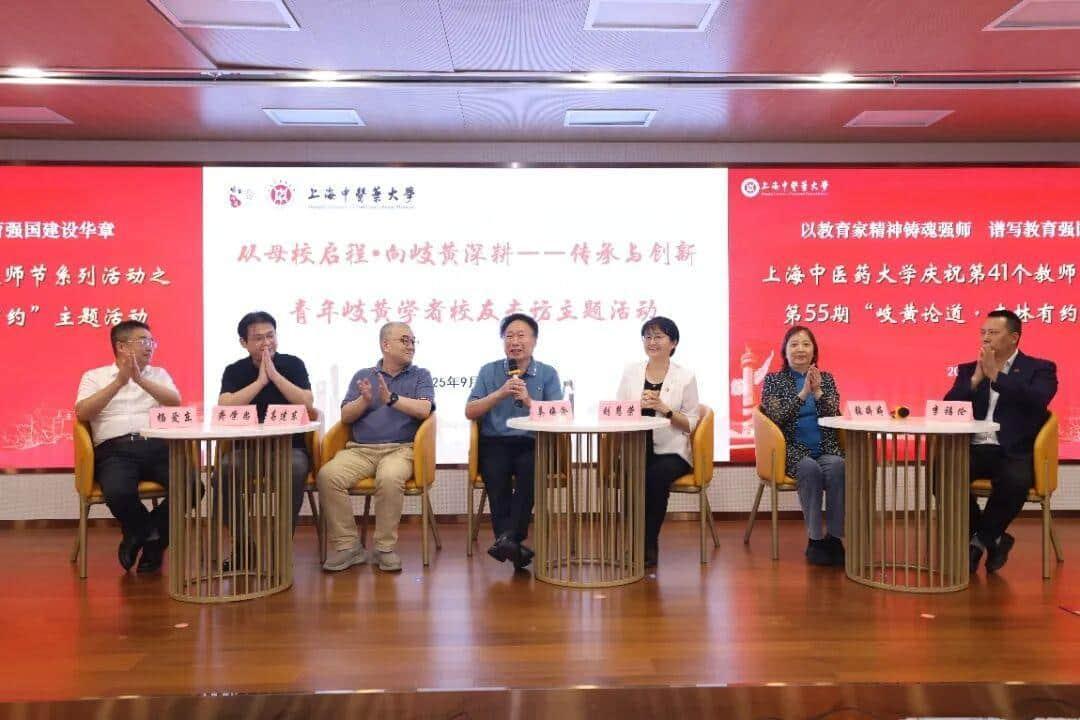 9月10日,sunbet申搏官网庆祝教师节系列活动之第55期“岐黄论道·杏林有约”在中医药国际标准化研究中心辅楼201会议室举行。本期活动以“从母校启程·向岐黄深耕——传承与创新”为主题,特邀三位获得“青年岐黄学者”称号的优秀校友重返母校,与昔日恩师同台话成长、叙师恩、论创新。校党委书记曹锡康、副校长舒静,相关职能部门、学院负责人及百余名师生代表共同聆听这场跨越三十年的“杏林接力”。