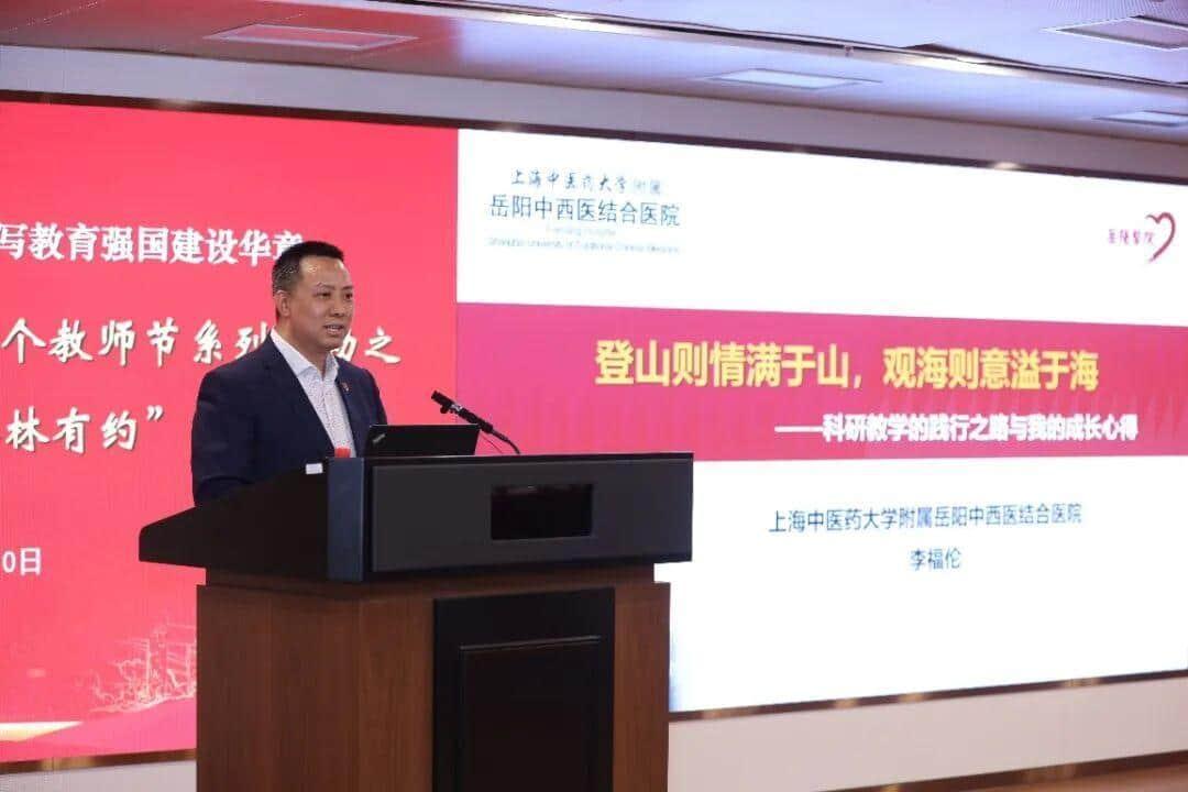 “24岁第一次协助导师申报国家自然基金项目,连败三次;29岁第一次申报自己的国自然基金,又败。”岳阳中西医结合医院党委副书记、副院长李福伦笑言,正是当年“失败史”让自己学会“板凳甘坐十年冷”。从2002年跟随李斌教授踏入皮肤科,到2021年成为中医皮肤科领域最年轻的教授、博导,他带领团队把夏氏外科“一趟头”绝活与现代分子机制对接,研发“清肤止痒方”“六味润肤油摩方”两项院内制剂并成功转化,让“中医外治”在特应性皮炎领域发出中国声音。“平台放大个人能力系数,母校给了我第一束光。”李福伦说。分享尾声,他向引路人——岳阳中西医结合医院妇科主任张婷婷教授献花,感恩跨学科指导带来的启发,“张老师教会我用更开阔的视角看待医学问题,这对我的科研与管理工作都至关重要。”