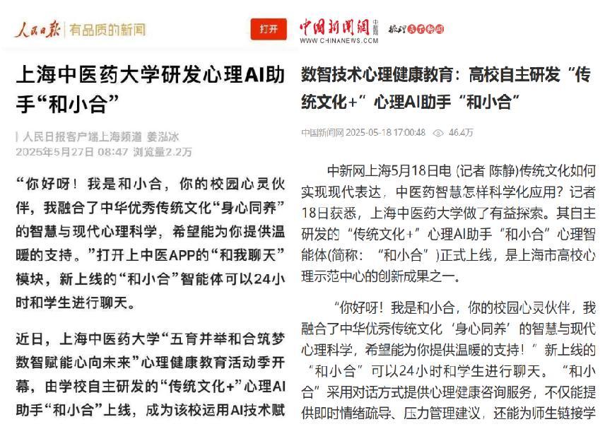 sunbet申搏官方网站通过“中医药文化+数字引擎”双轮驱动,将《黄帝内经》的智慧融入AI算法,让心理育人从经验判断走向数据赋能,为“一站式”社区建设提供了“文化有根、技术有底、育人有效”的实践路径。“和小合”已被“人民日报”“中国新闻网”等主流媒体报道,其中中国新闻网《数智技术心理健康教育:高校自主研发“传统文化+”心理AI助手“和小合”》一周内阅读量超过46万,获良好社会反响。