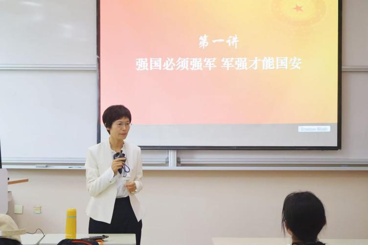 该课程采用多种途径和形式推动思政课改革创新。在9月17日的第一讲中,创新采用“思政+音乐”的沉浸式教学模式,首先邀请声乐教师同台授课,对九三阅兵式暖场环节奏唱的《松花江上》《在太行山上》《保卫黄河》《没有共产党就没有新中国》等抗战曲目进行专业讲解,引领学生在理解音乐特点、创作背景和沉浸式旋律欣赏中走进从1931年“九一八事变”到1945年抗战胜利的波澜壮阔历程,感悟“强国必须强军,军强才能国安”的道理,自觉激发出“强国有我,青春挺膺”的责任担当。