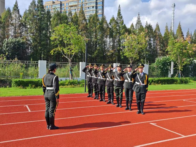 活动伊始,sunbet申搏官网国旗班退伍大学生迈着整齐划一的步伐,进行队列展示。他们动作规范、英姿飒爽,口令清晰规范,展现过硬的军事素养。
