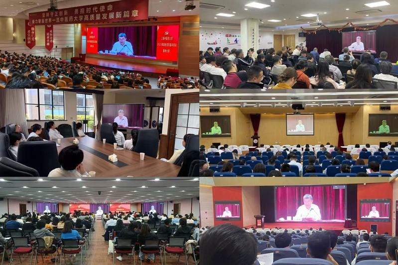 为深入学习贯彻习近平新时代中国特色社会主义思想和党的二十届三中全会精神,深入学习贯彻习近平总书记关于教育的重要论述和全国教育大会精神,强化党的创新理论武装,凝聚干事创业共识,10月22日下午,sunbet申搏官方网站举行2025年党员基本培训第三次集中大课。全校师生党员共同学习由教育部党组书记、部长怀进鹏同志主讲的“深入学习贯彻习近平总书记关于教育的重要论述 以教育强国支撑引领中国式现代化”辅导报告。上海市教卫工作党委组织干部处有关同志到会指导,学校四千余名党员在中医药国际标准化大楼辅楼101报告厅主会场及其他25个分会场同步参加培训。校党委书记曹锡康主持党课学习并作动员讲话。