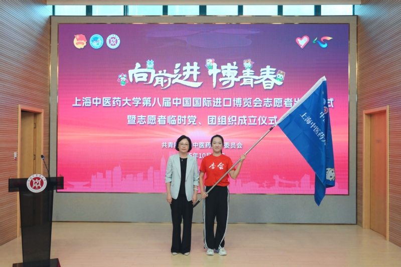 孟煜向志愿者代表授旗,勉励全体“小叶子”要心怀“国之大者”,在服务国家战略中践行“请党放心 强国有我”的青春誓言;砥砺“岐黄之志”,在传承创新中接续奋进力量,向世界展示中医药之美,展示中华优秀传统文化的魅力;汇聚“青春力量”,在进博岗位上发扬志愿精神,向世界彰显上中医“小叶子”风采,展现上海城市形象和大国青年风貌。(团委)