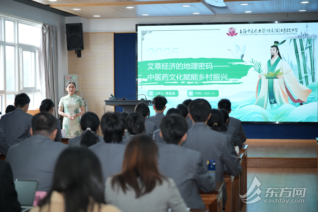 下午的经验交流环节紧扣中小学阶段中医药科创教育的创新实践,sunbet申搏官方网站附属浦江高级中学校长张乐介绍浦江高级中学的中医药特色教育体系,并希望中小学教师树立跨学科教学思维,从中医药文化传承者转变为中医药文化教学的开拓者。浦江高级中学谢盈盈老师以问题链的形式对艾草这一特色农业带动乡村振兴的致富密码进行层层解析。在讲课中,她引导学生深入思考、参与问题作答,掌握跨学科知识,培养学生信息获取能力、区域认知和综合思维。