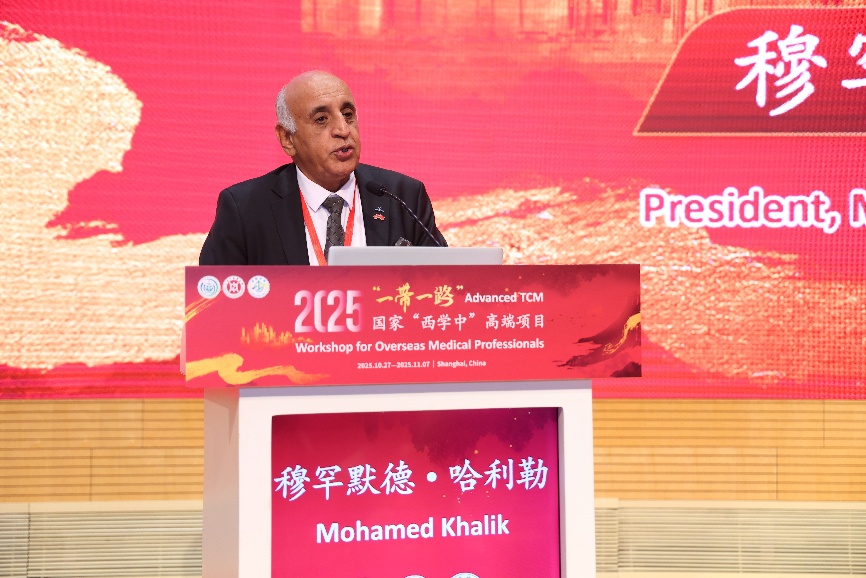 摩洛哥-中国友好协会会长穆罕默德-哈利勒作为学员代表发言,回顾自己与中医的深厚渊源。20世纪70年代末受中国援摩医疗队启发,他来到中国系统学习中医,回国后在卡萨布兰卡开设中医诊所服务当地民众。如今他的女儿作为眼科医生,也在摩洛哥运用针灸技术服务病患,实现了中医医术的传承和中摩友谊的延续。他强调,本次项目是“一带一路”倡议下知识共享与人文交流的生动体现,有助于将传统医学智慧与现代医学相结合,共同应对全球健康挑战。
