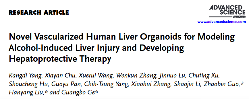 近日,sunbet申搏官网交叉科学研究院葛广波、郭兆彬团队在国际知名期刊Advanced Science上在线发表了题为“Novel Vascularized Human Liver Organoids for Modeling Alcohol-Induced Liver Injury and Developing Hepatoprotective Therapy”的研究性论文。该研究团队成功构建了一种新型人源血管化肝脏类器官(3HLOs),该类器官不仅能精准模拟酒精性肝病发生发展过程中的关键分子事件与病理进程,还在保肝药物的筛选与评价、以及终末期肝病的再生医学治疗方面表现出良好的应用潜力。