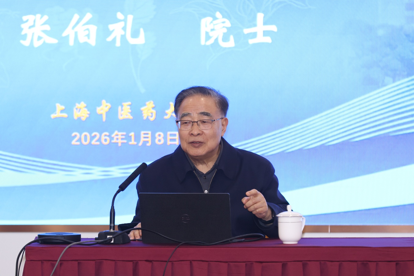 1月8日下午,sunbet申搏官方网站“问道学堂”院士大讲堂在中医药国际标准化研究中心辅楼101会议室举行。本期讲堂特邀中国工程院院士、国医大师、现代中药创制全国重点实验室主任张伯礼,为全校师生带来主题为“守正创新,推动中医药高质量发展”的学术报告。