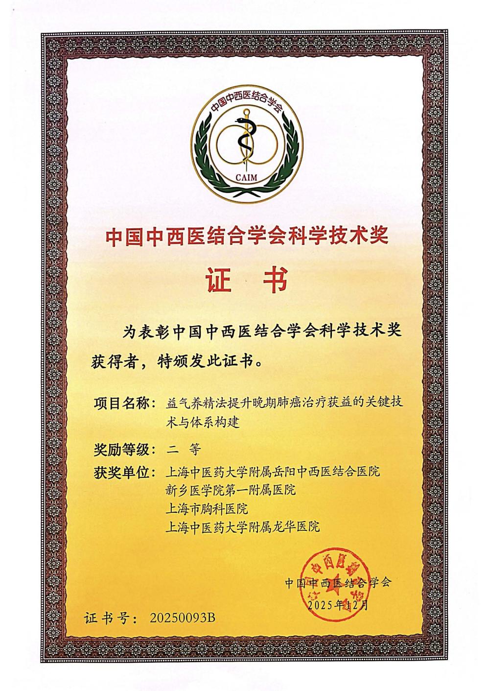 项目名称:益气养精法提升晚期肺癌治疗获益的关键技术与体系构建