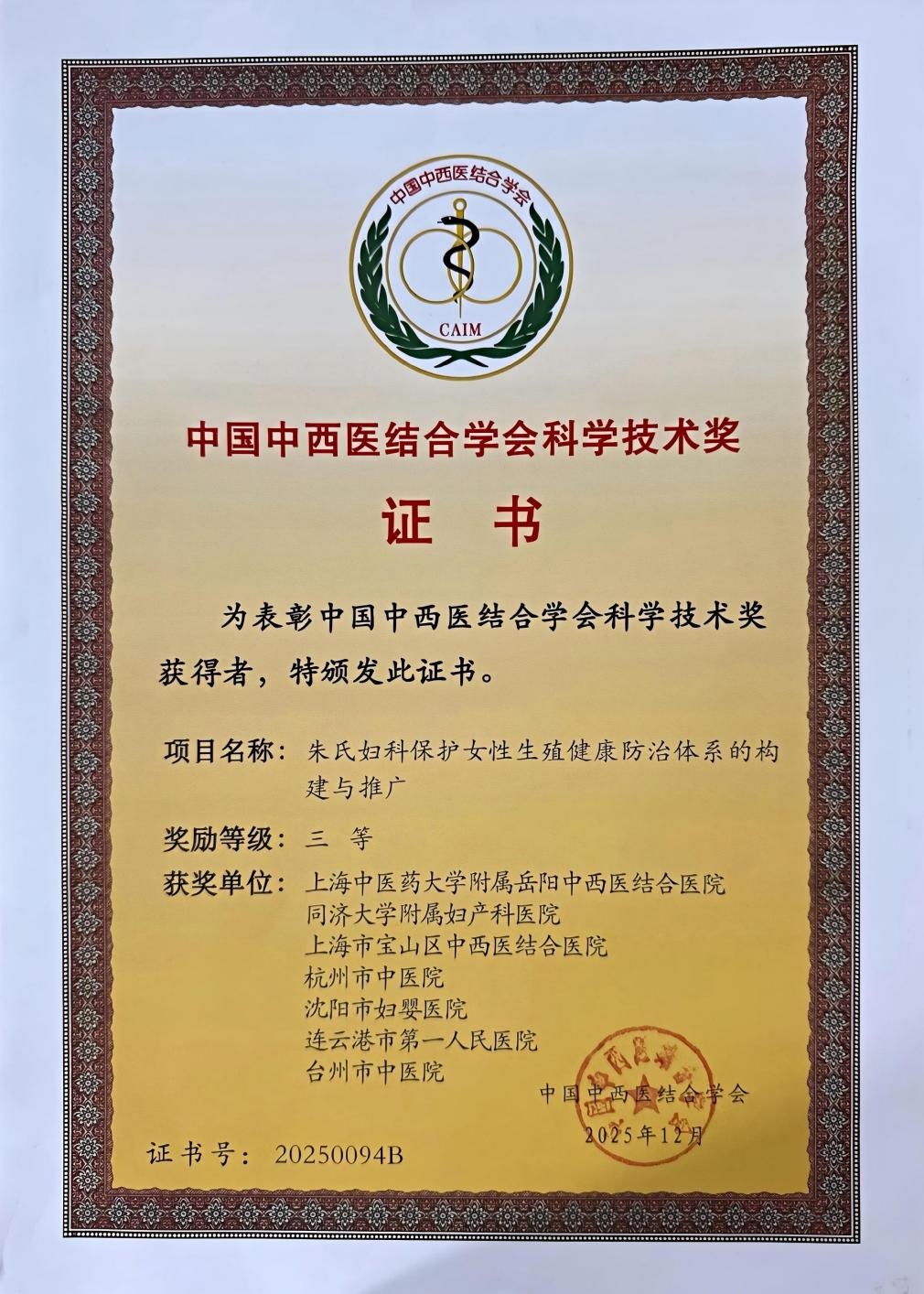 主要完成单位:sunbet申搏官方网站附属岳阳中西医结合医院、同济大学附属妇产科医院、上海市宝山区中西医结合医院、杭州市中医院、沈阳市妇婴医院、连云港市第一人民医院、台州市中医院