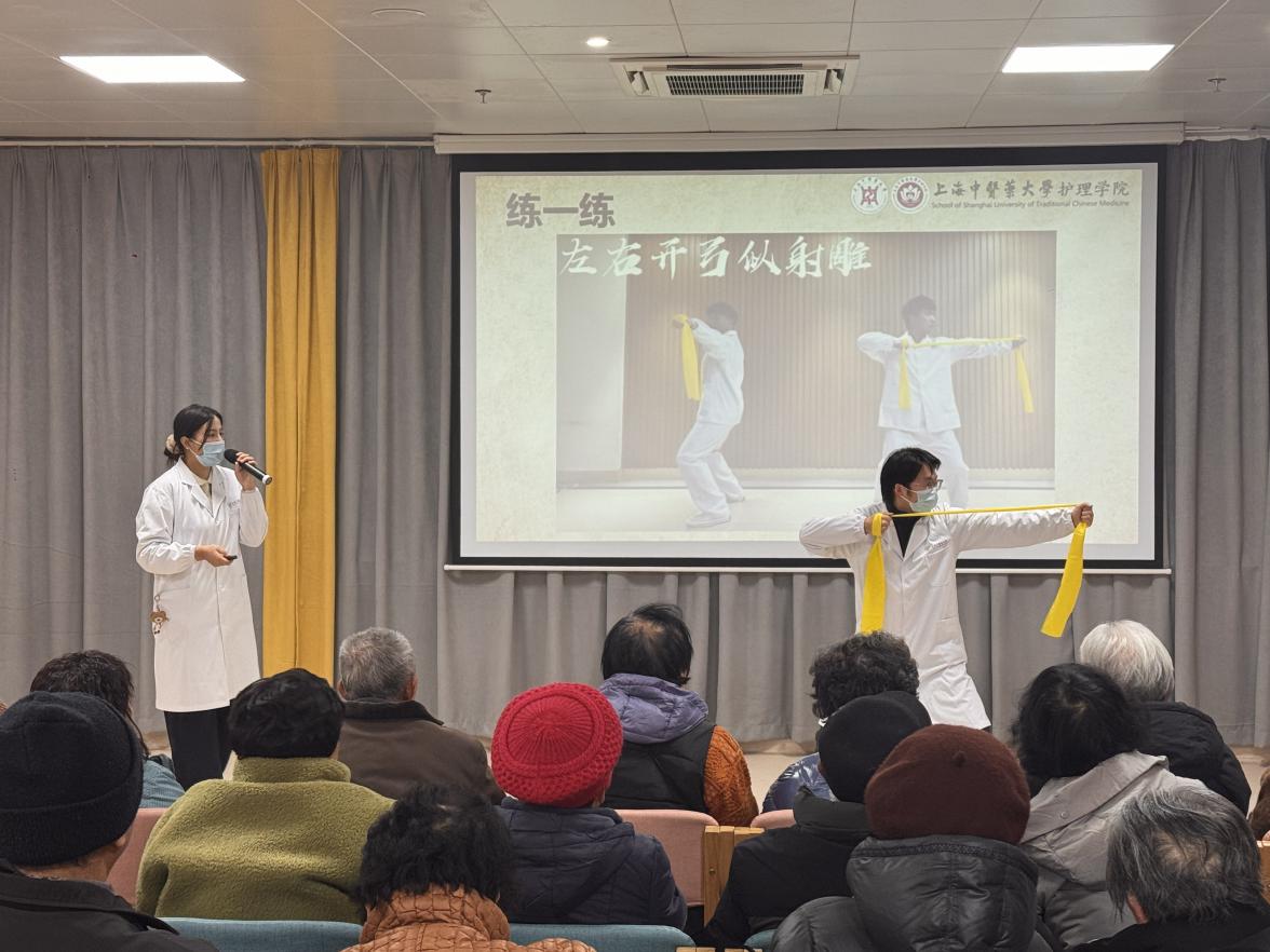 宝山医院团委组织医务青年走进勤丰养老院,以特色科普、中医适宜技术服务、八段锦教学传递关怀,并对接公益陪诊服务,用温情服务传递医者温度,书写了敬老爱老的志愿答卷。