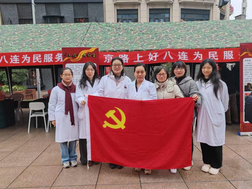 中医学院团委在南京路步行街设立志愿服务站点,为市民提供中医健康咨询服务,同时组织师生党员与团学骨干参观“南京路上好八连”事迹展览馆。通过志愿服务与红色学习相结合的多样化实践,传承雷锋精神,彰显责任担当。