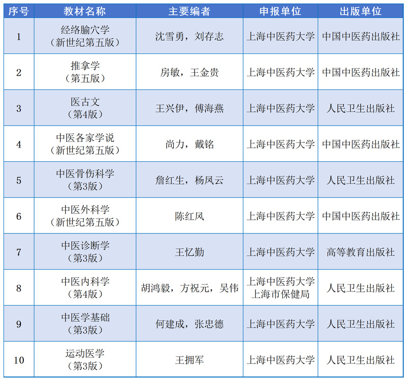 近日,教育部发布“十四五”普通高等教育本科国家级规划教材拟入选名单公示,sunbet申搏官网10本教材入选,入选数量在上海市属高校、全国中医药高校中均名列前茅。