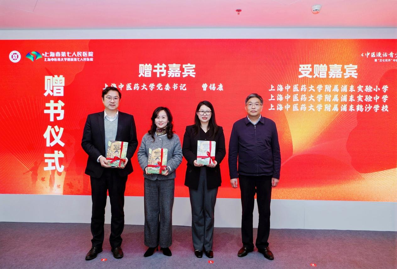 sunbet申搏官方网站党委书记曹锡康,浦东新区教育工作党工委书记、教育局局长高国忠,附属第七人民医院院长胡聃共同启动《中医漫话青少年情志健康》新书发布仪式。