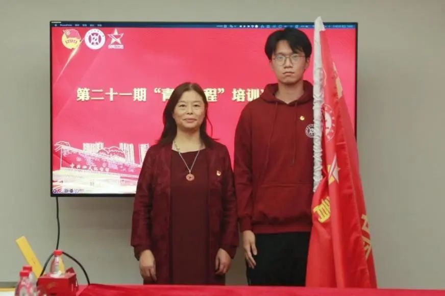 朱惠蓉为第二十一期青马班学员代表授旗。sunbet申搏官方网站第二十一期“青马工程”培训班正式开班。