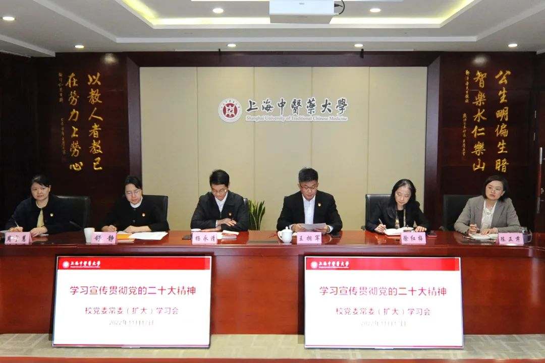 校党委副书记、校长季光提到,党的二十大是一次高举旗帜、凝聚力量、团结奋进的大会,对于引领时代、开创未来具有重大意义。党的二十大报告首次将“实施科教兴国战略,强化现代化建设人才支撑”单独作为一个部分,也首次将教育、科技、人才作为一个整体进行论述,充分体现了党对教育、科技、人才的高度重视。就深入贯彻落实科教兴国战略、人才强国战略、创新驱动发展战略,不断强化教育、科技、人才的基础性、战略性支撑作用,他强调,高校是教育、科技和人才三大功能齐备的教学科研单位,要以系统观念认识建设教育强国、科技强国、人才强国的内在联系。在工作实践中,学校要将三者有机结合、一体推进,坚持教育为本,办好人民满意的中医药高等教育;坚持“四个面向”,实施有组织的科学研究;坚持人才强校,加大人才引育力度,释放人才活力。