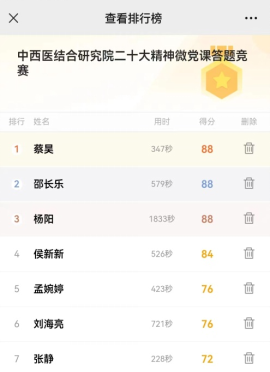 微党课学习完成后,线上组织学习党的二十大精神主题知识竞答。通过线上限时竞答的形式快速有效的评估主题微党课的学习成效。设置竞赛奖励机制调动学员积极性与参与度。