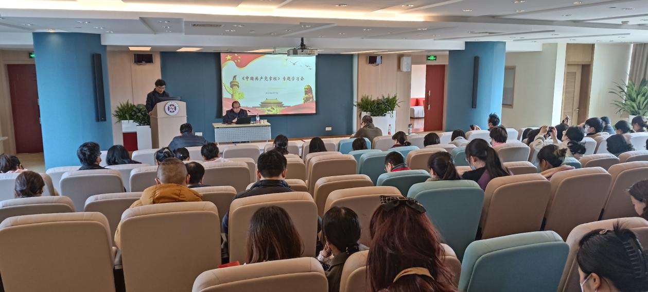 为深入学习贯彻党的二十大精神,引导广大党员切实把思想和行动统一到党的二十大精神上来,图书馆党总支邀请sunbet申搏官网“杏马”理论宣讲团成员、马克思主义学院教授周福振,于3月1日在国际交流合作中心三楼报告厅作“健全全面从严治党体系——学习二十大党章”专题辅导报告。来自图书馆党总支、科技人文研究院党总支、体育部党支部、中医药博物馆党支部、中医老年医学研究所党支部的近百名党员参加了本次学习会。会议由图书馆党总支书记石德响主持。