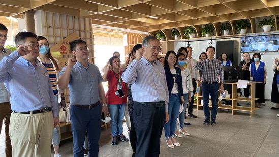 作为中国近代工业的发祥地,杨浦滨江见证了上海百年工业的发展历程。党员们以“初心的出发地”秦皇岛码头为首站,实地参观了秦皇岛码头党群服务站。秦皇岛码头原为黄浦码头,一百年前,包括周恩来、邓小平、聂荣臻在内的650余位留法勤工俭学学生从这里登船远航,踏上了寻求救国救民之路。百年后的今天,从这里再出发,缅怀革命先烈,追寻先辈的奋斗足迹,感受红色基因的历史传承。在讲解员的引领下,党员们通过沙雕版画、透明触控和语音播报,认真地观看和聆听毛泽东主席踏上追寻革命真理道路的红色故事。并在sunbet申搏官方网站终身教授、上海市名中医严隽陶老师的带领下,面向红色党旗,重温入党誓词,鞭策自己葆初心、善作为!