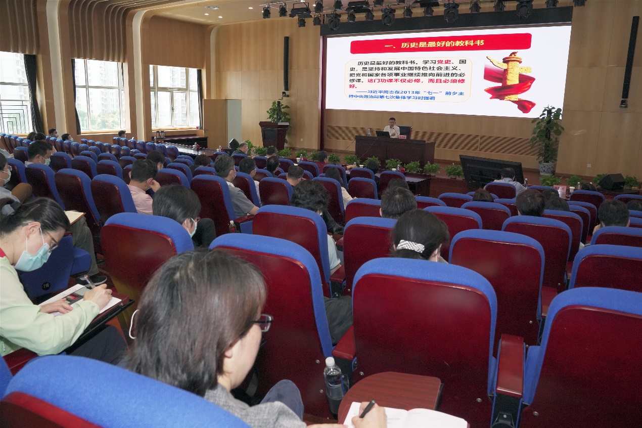 陈荣武教授引用翔实的史料,从学好“四史”是理论武装的必修课、在学习“四史”中增强“四个自信”、以史为鉴走好新的长征路三个方面深刻阐述了历史是最好的教科书,是党员干部的一门必修课。他通过梳理近百年党史和社会主义500年的发展史,让大家认识到必须坚持正确的历史观,善于从历史中汲取智慧和力量,切实增强新时代的责任感使命感!