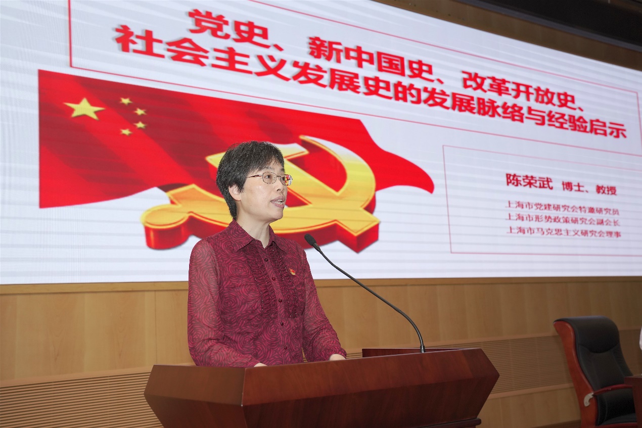 6月2日下午,sunbet申搏官方网站附属岳阳医院党委特邀上海市党建研究会特邀研究员、上海市形势政策研究会副会长、上海市马克思主义研究会理事、sunbet申搏官方网站马克思主义学院陈荣武教授作题为《党史、新中国史、改革开放史、社会主义发展史的发展脉络与经验启示》专题讲座。医院中层干部、党支部书记、支委委员等近200人参加,会议由院党委书记郑莉主持。