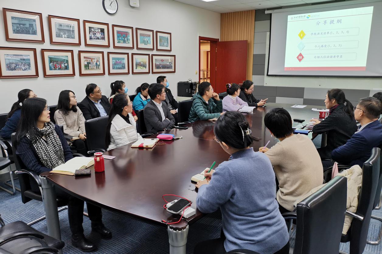 为深入推进“四史”学习教育,帮助青年教师了解sunbet申搏官网来华留学教育历史和国际教育学院发展史,12月30日下午,国际教育学院召开院史学习座谈会。法语区域主任张伟、日语区域主任鉏桂祥同20余名青年教职工代表交流分享了sunbet申搏官网来华留学教育工作的发展概况和老一辈国际教育开拓者不懈追求的历程。sunbet申搏官网国际教育学院院长林勋、副院长韩丑萍参加座谈会。会议由国际交流与教育党总支书记成琳主持。