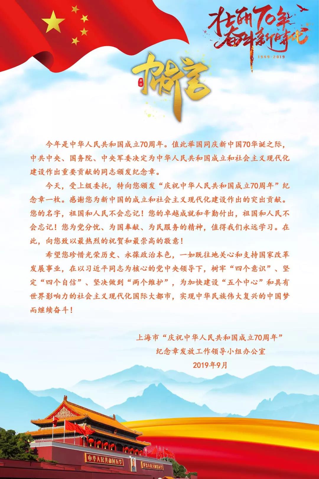 受上级委托,各级领导及相关部门负责人对以上人员进行慰问,颁发纪念章、宣读上海市的贺信,感谢他们为新中国的成立和社会主义现代化建设作出的突出贡献,并向他们致以最热烈的祝贺和最崇高的敬意!
