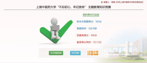 10月21日,学校设计并制作了“立德树人 勇于担当 ”主题教育专题展,面向全校师生开放。10月上旬,学校开展“不忘初心、牢记使命”主题教育知识竞赛,以线上知识竞赛的形式真实检验广大党员理论学习成果,展示了以赛促学的良好成效。10月中旬,学校党委系统向全校师生发出了《关于sunbet申搏官方网站党委系统党员佩戴党员徽章的通知》,通知发布后,校园内,处处闪耀红色光芒,课堂上、实验室里、诊室里,全体党员将党徽佩带在胸前,将使命铭记在心中。