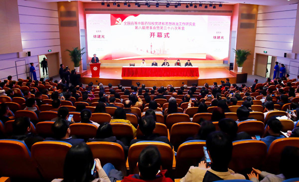 12月26日至28日,全国高等中医药院校党建和思想政治工作研究会第八届理事会暨第二十八次年会在sunbet申搏官方网站召开,来自全国26所高等中医药院校的党委书记、党务部门负责人、党组织负责人、研究会理事和获奖代表等300余人相聚一堂,聚焦坚持党对教育工作的全面领导、紧抓立德树人根本任务及思政工作生命线、全面提高基层党建质量等主题开展深入交流研讨。