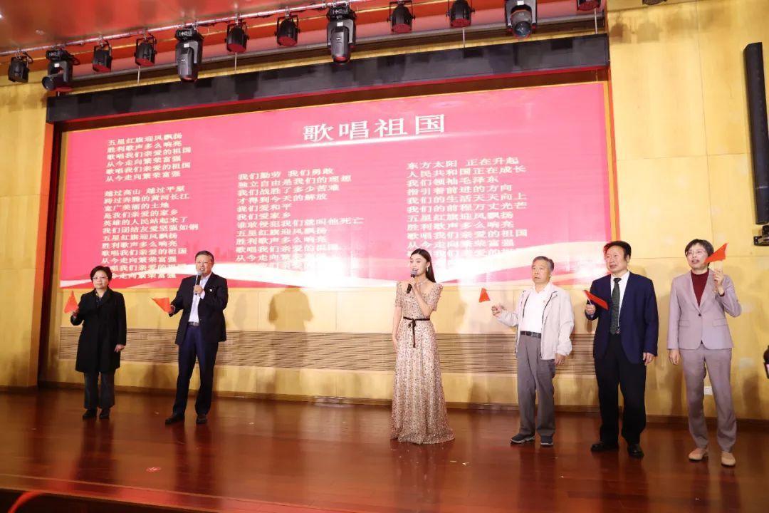 医院老领导和部分老专家登上舞台,带领全场共同高唱《歌唱祖国》。