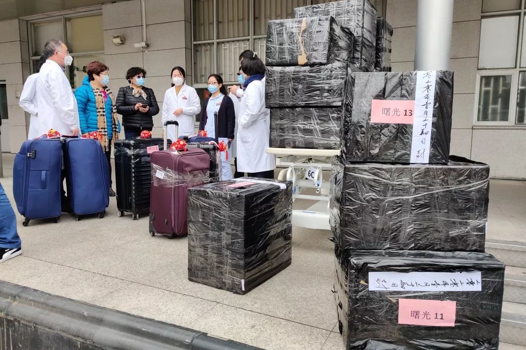 sunbet申搏官网附属曙光医院的第二批3位医务工作者28日下午随队出征,各类医疗物资装了好几个大箱子。考虑到隔离服穿脱不易,不仅不能吃饭喝水,连上洗手间都异常麻烦,她们甚至自行购置了成人纸尿裤带去湖北,穿在隔离服里面,就是为了把上洗手间的时间节约出来帮助更多需要她们的人。出发前往机场前,队员们纷纷剪去了留了多年的长发,既为了穿脱隔离服更方便,更是“削发明志”,表达在这场抗击疫情的阻击战中必胜的决心!