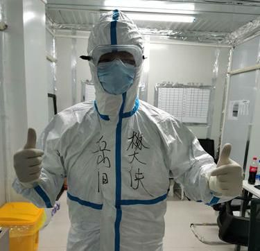 “樊大侠”是医疗队副领队李斌在樊民的防护服上亲手写下的名字,在场的医护人员纷纷称好,抗击病毒,信心满满。岳阳中西医结合医院心血管内科主任医师樊民也是此次国家中医医疗队队员之一,并作为武汉雷神山医院感染三科七病区主任。抵达武汉后,樊民在忙碌的工作之余,记录下了医疗队医护人员们在雷神山医院的抗疫动态。