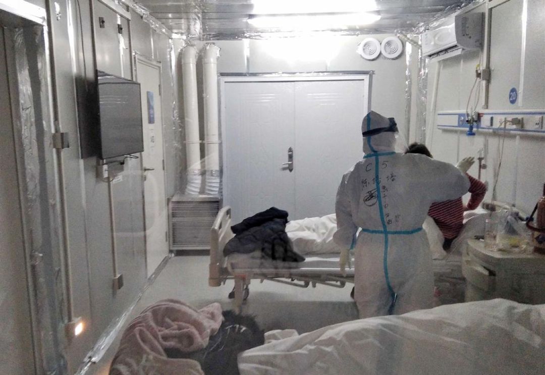 雷神山医院的隔离病房是负压病房,相较于普通医院在救治传染性疾病病人上优势明显。队员们克服了全新系统操作和同龙华医院在人员配合上的生疏,第一班结束时,出仓的队员们衣服都湿透了,但没有一个人有怨言,只有简单的调侃和互相的鼓励。等到十点第一班陆续离开病房,朱颖才发现自己和队友们居然已经“绝食”快八个小时了。有些病人病情出现反复,医疗队内外围的对讲机响个不停,队员们密切关注患者情况。