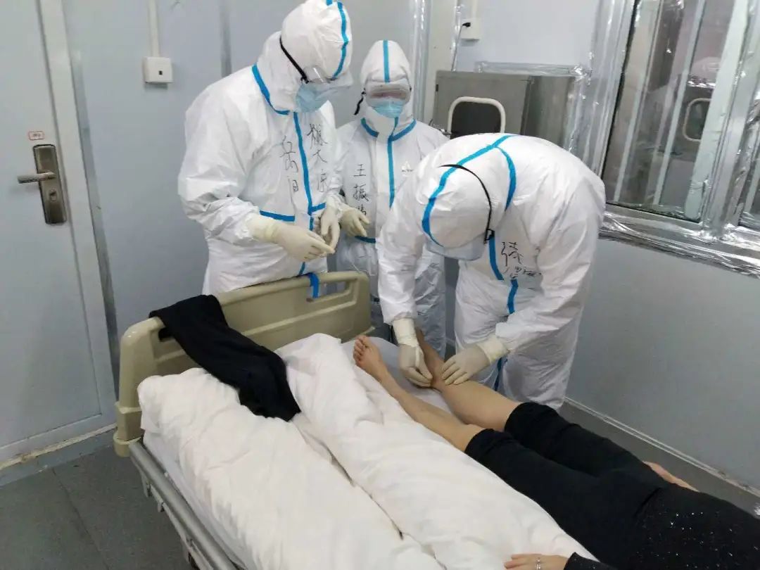 李斌介绍,目前中医药治疗覆盖率已超过100%。他说:“(针对)病人气喘、咳嗽,我们用一些针刺、针灸的方法,还有一些外敷的方法;同时还通过耳穴、敷贴,让患者睡眠好一点。我们还运用一些功法,起到一个调气的作用,调节免疫力,增强抵抗力。”