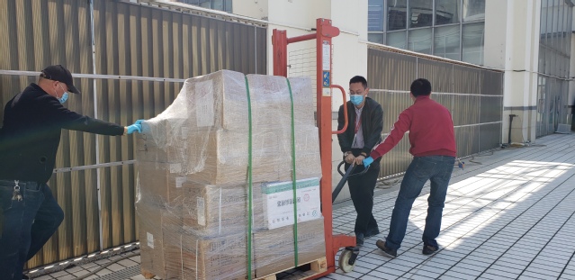 后勤工作人员辛勤搬运sunbet申搏官网援鄂医疗队驰援武汉医疗物资