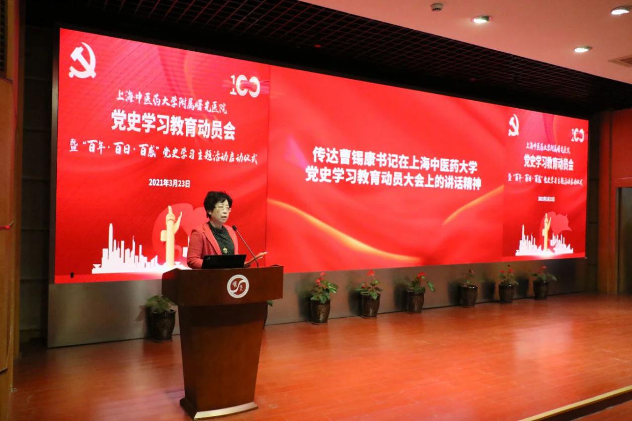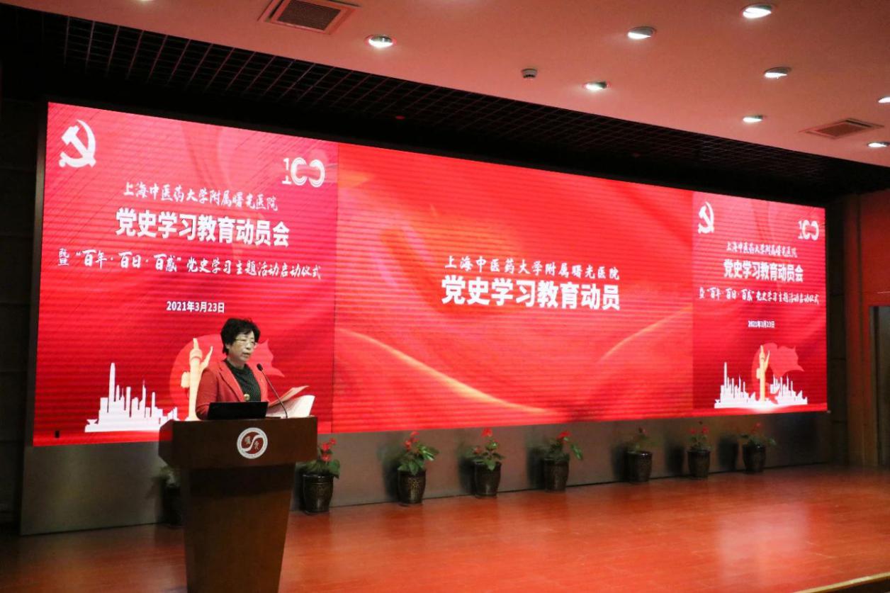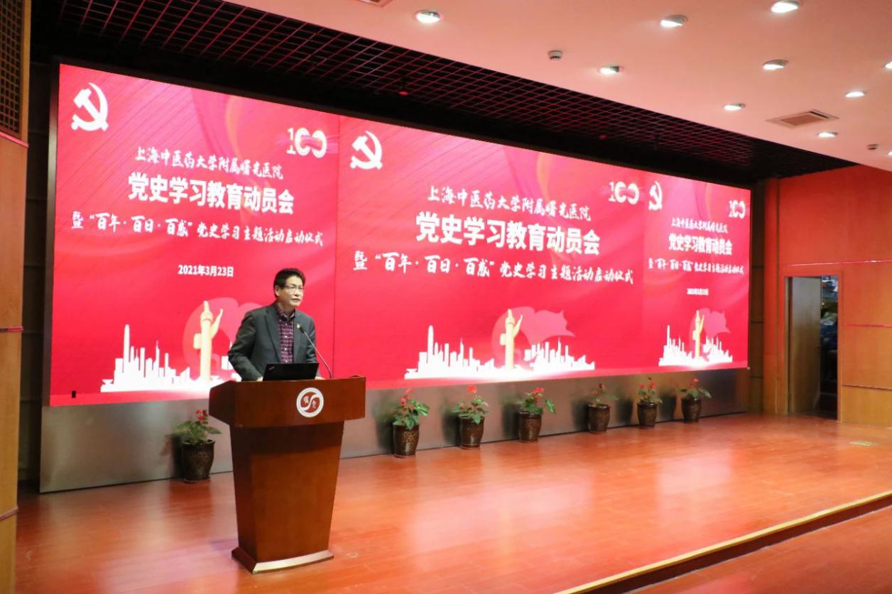 为深入学习贯彻习近平总书记在党史学习教育动员大会上的重要讲话精神和党中央《关于在全党开展党史学习教育的通知》精神,落实市委、教育部、市教委工作党委、sunbet申搏官方网站党委的有关要求和部署,3月23日下午,附属曙光医院召开党史学习教育动员会暨“百年·百日·百感”党史学习主题活动启动仪式。曙光医院党政领导班子、党委委员、党支部书记及委员、行政职能科室负责人、临床科室主任、研究室主任等参会。医院党建共建单位上海市委党校谷宇教授、中共一大会址纪念馆李家佳应邀出席。会议由医院党委副书记、院长周华主持。