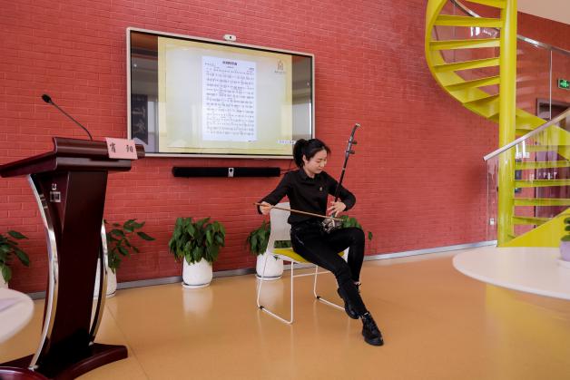 肖阳与其指导的上音“海尚音苑”学生社团带来一场别开生面的沙龙讲座。肖阳首先围绕“四史”学习教育内容,回溯上海音乐学院的院史。随后,她运用视频展示与现场演绎相结合的方式,具体介绍在抗日战争、解放战争和新中国成立三个历史时期多位著名音乐家的代表作品,如贺绿汀的《游击队歌》、冼星海的《黄河大合唱》、黄自的《抗敌歌》、刘雪庵的《长城谣》、何士德的《新四军军歌》、才旦卓玛的《唱支山歌给党听》等。上海音乐学院学生现场二胡演奏《洪湖畅想曲》《赛马》,演唱《唱支山歌给党听》。